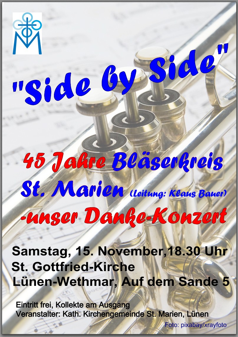 Bläserkreis Lünen – Unser Danke-Konzert am 15.11.2025 um 18.30 Uhr in der St. Gottfried-Kirche in Lünen Wethmar 3. November 2025 Ulrich Temme Aktuelles Suche Suchen nach: Suchen Kirche+Leben im Bistum MünsterUmgang mit der AfD: Katholische Unternehmer verteidigen Position 29. November 2025Pater Daniel Hörnemann: Zuspruch in kriegswütiger Zeit 29. November 2025Katholische deutsche Synodalkonferenz nimmt erste von drei Hürden 29. November 2025Türkei: Leo XIV. unterschreibt Ökumene-Erklärung – Überraschung in Moschee 29. November 2025Bistum Mainz: Papst Leo XIV. ernennt ersten Nicht-Europäer zum Weihbischof 29. November 2025Heimat vieler Menschen - Münsteraner Pfarrei verabschiedet Kirche 29. November 2025Bistum Münster: Das sind die neuen Küsterinnen und Küster 29. November 2025Adventsideen aus dem Bistum Münster: Vier besondere Projekte 29. November 2025Millionen-Förderung für Kirchenhistoriker Hubert Wolf aus Münster 28. November 2025Hochschule für Philosophie sagt Vortrag ab und erklärt sich 28. November 2025