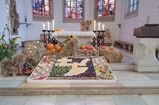 Erntedank – Dank für die Gemeinschaft Als ich vergangenen Sonntag den wunderschönen Erntedankschmuck in der Ludgerikirche sah, fühlte ich mich erinnert an eines der schönsten Highlights erinnert, die ich in meiner letzten Gemeinde im Jahreslauf