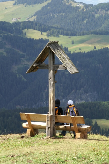 Mich erinnert das an meine Urlaube, die ich sehr gern in den Bergen verbringe. Wenn ich dann auf meinen Wanderungen eine schön gelegene einsame Bank finde, vielleicht bei einem Wegekreuz, da setze ich mich hin und genieße es, gewissermaßen über der Welt zu sein. Dann liegt mir die Welt zu Füßen und ich habe das Gefühl, dass Gott diese wunderbare Natur nur geschaffen hat, um mir eine Freude zu machen. Ich weiß natürlich, dass dies nicht so ist, und ich gönne diese Freude allen Menschen von ganzem Herzen. Aber ich fühle mich unglaublich reich beschenkt von Gott und bin ihm dort ganz nahe. Es gibt nichts Schöneres! Ruhe, Weite, Schönheit – und Gott.