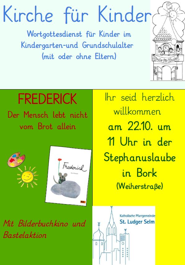 Kirche für Kinder am 22.10.2023 um 11 Uhr in der Stephanuslaube in Bork