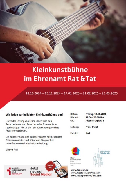 Kleinkunstbühne im Ehrenamt Rat & Tat am 18.10.24 von 19 – 22 Uhr