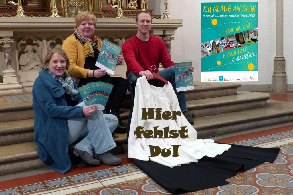 „Ich glaub an dich!“ – unter diesem Motto findet am Samstag, 6. Juni 2020, die Ministrantenwallfahrt der acht Nordwestdeutschen (Erz-)Bistümer statt. Das Ziel dieser Wallfahrt ist Osnabrück. Mehrere 1.000 Messdienerinnen und Messdiener werden zur Domstadt pilgern. Aus dem ganzen Bistum Münster werden sich auch viele auf den Weg machen. So wollen wir auch mit vielen Messdienerinnen und Messdienern sowie die Mitglieder der KaJu aus der Pfarrei St. Ludger uns auf den Weg machen. Wir werden in einer Busgemeinschaft mit der Pfarrei St. Mauritius aus Nordkirchen und der Pfarrei St. Marien aus Lünen unterwegs sein. Sei dabei und melde dich an!
