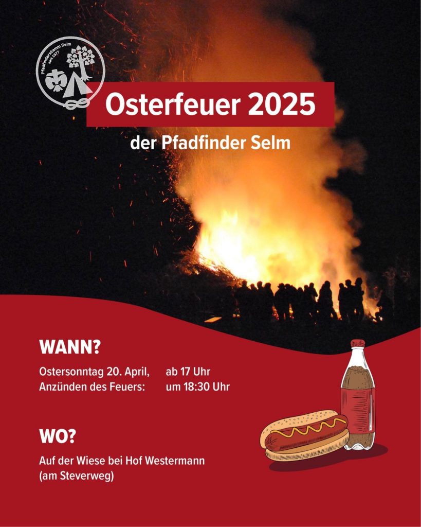 Osterfeuer der Pfadfinder am 20.04.2025 ab 17 Uhr beim Hof Westermann