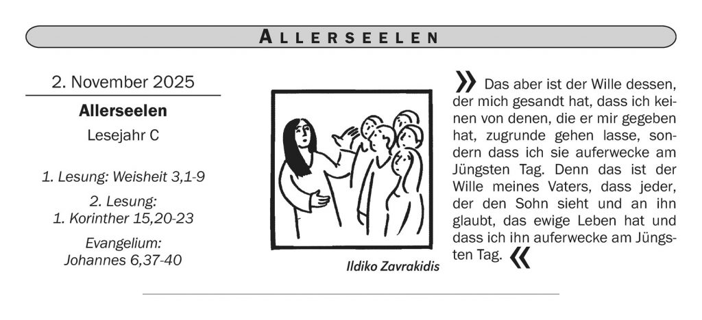 Sonntag, 2. November – Allerseelen – 31. Sonntag im Jahreskreis