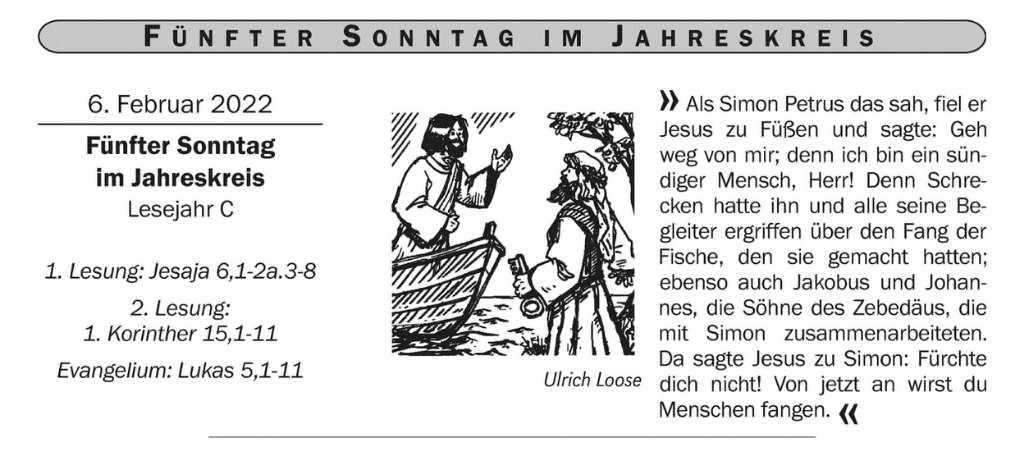 Sonntag, 6. Februar – 5. Sonntag im Jahreskreis