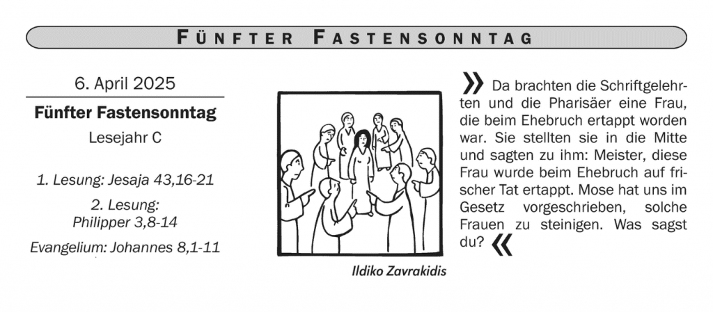 09.30 Uhr Stephanuskirche: Familiengottesdienst mit Palmprozession ab Laube – musikalische Gestaltung durch einen Projektchor – anschl. Fastenessen im Pfarrheim mit Sechswochengedächtnis