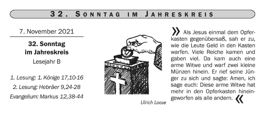 Die Kollekte an diesem Wochenende (6./7. November) ist die Aktion „Gutes Buch“ vorgesehen. Das Geld kommt zu 80% unseren Pfarrbüchereien zugute.