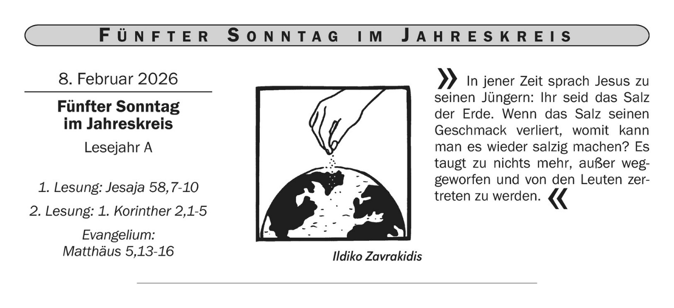 Sonntag, 8. Februar – 5. Sonntag im Jahreskreis