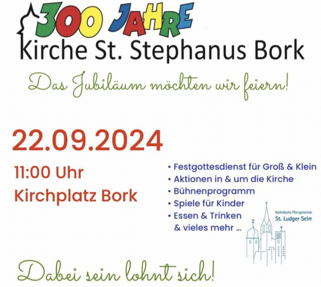 Die nächste Firmvorbereitung startet im Winter 2024. Dazu werden alle Jugendlichen aus dem Jahrgang 10.2007 – 09.2008 diesen Herbst angeschrieben. Die Feier der Firmung findet am Samstag, 29. März 2025 in der Kirche St. Ludger statt. Falls Ihr oder Sie Fragen haben, meldet euch gerne bei: Jessica Denne 0162-219 6146 oder im Pfarrbüro 02592-1353.