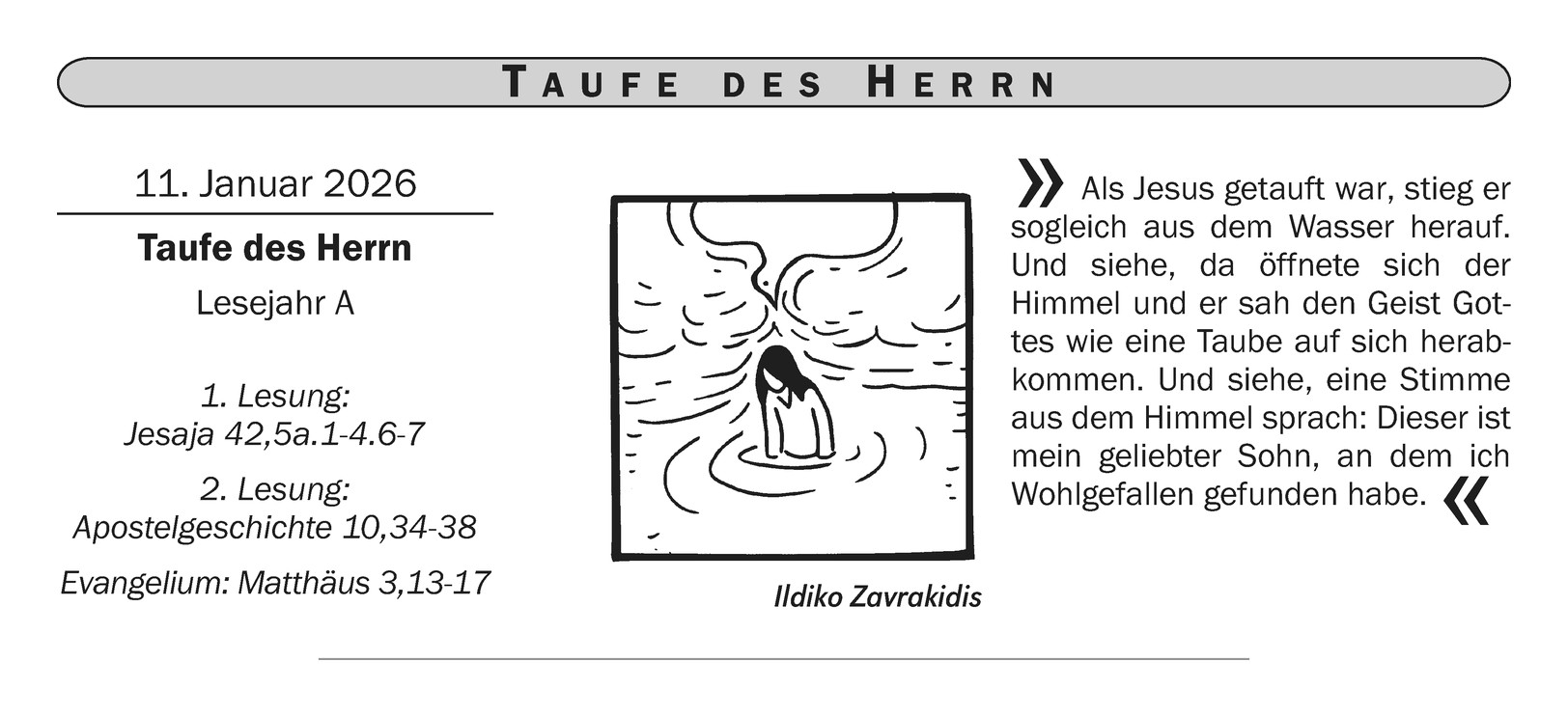 Sonntag, 11. JanuarTaufe des Herrn
