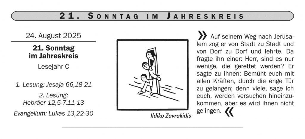 Sonntag, 24. August – 21. Sonntag im Jahreskreis