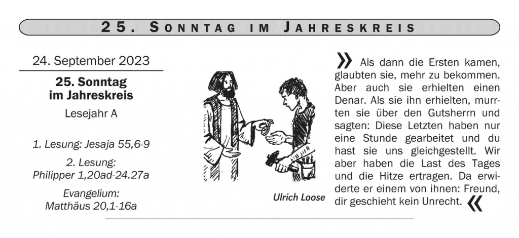 Sonntag, 24. September25. Sonntag im Jahreskreis