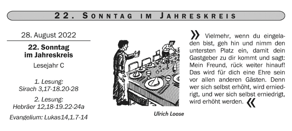 Sonntag, 28. August  –  22. Sonntag im Jahreskreis