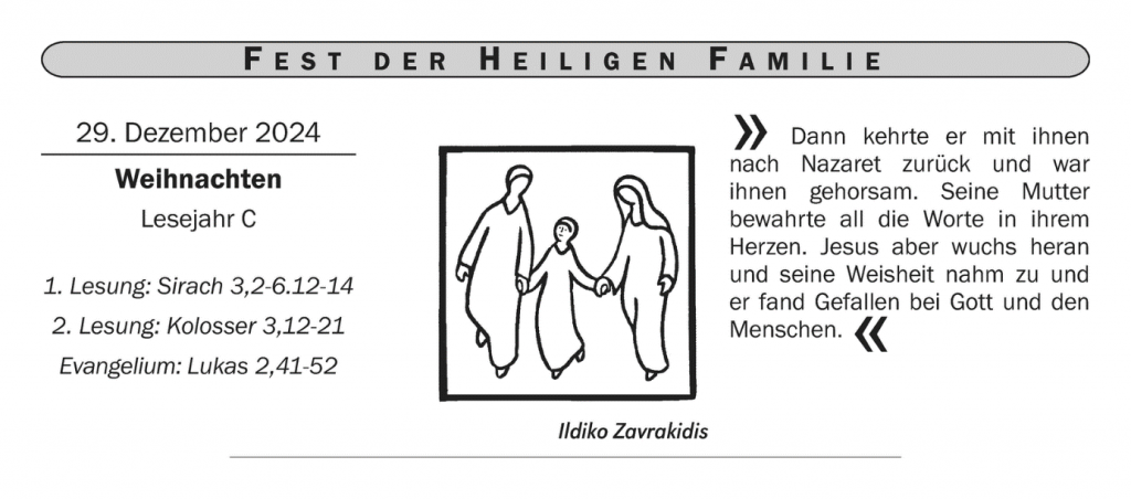 Sonntag, 29. Dezember – Fest der Heiligen Familie