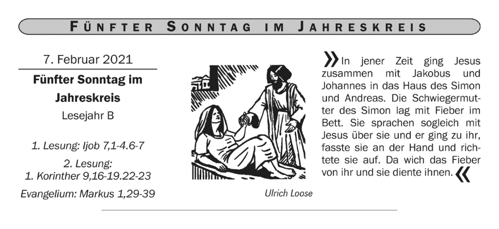 Aus dem heiligen Evangelium nach Markus (Mk 1, 29 – 39)