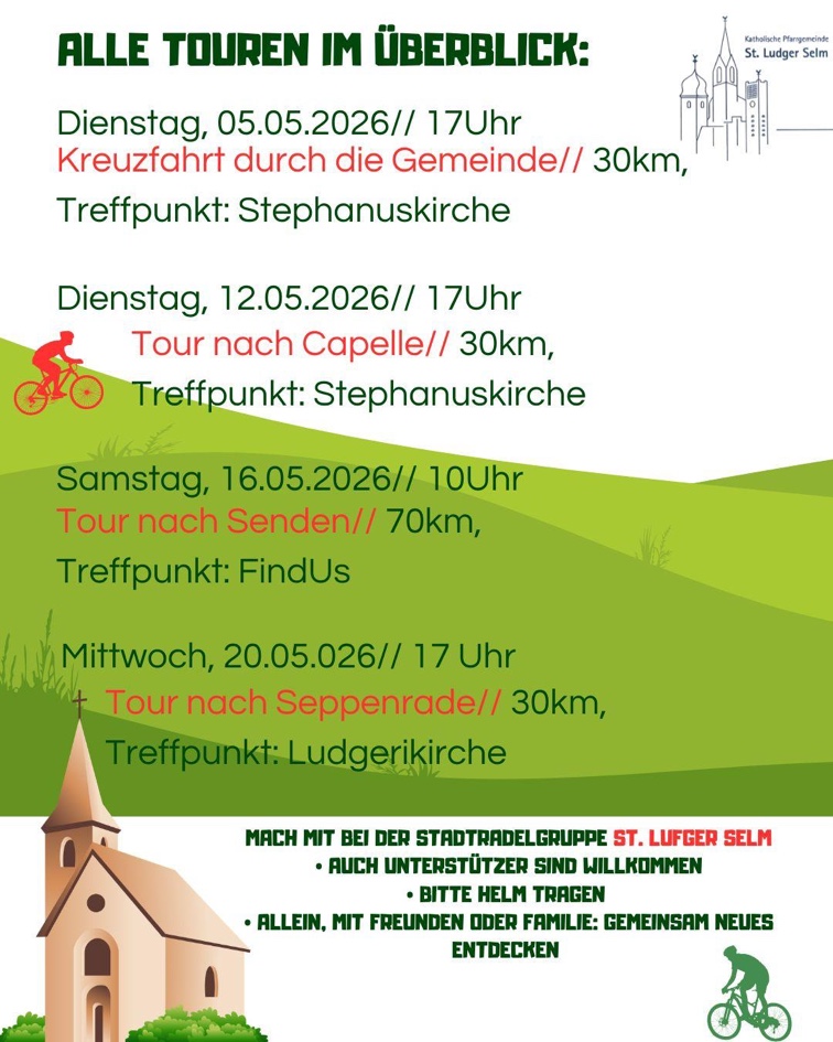 Stadtradelgruppe „Pfarrei St. Ludger“ – 4 Touren durch den Pastoralen Raum