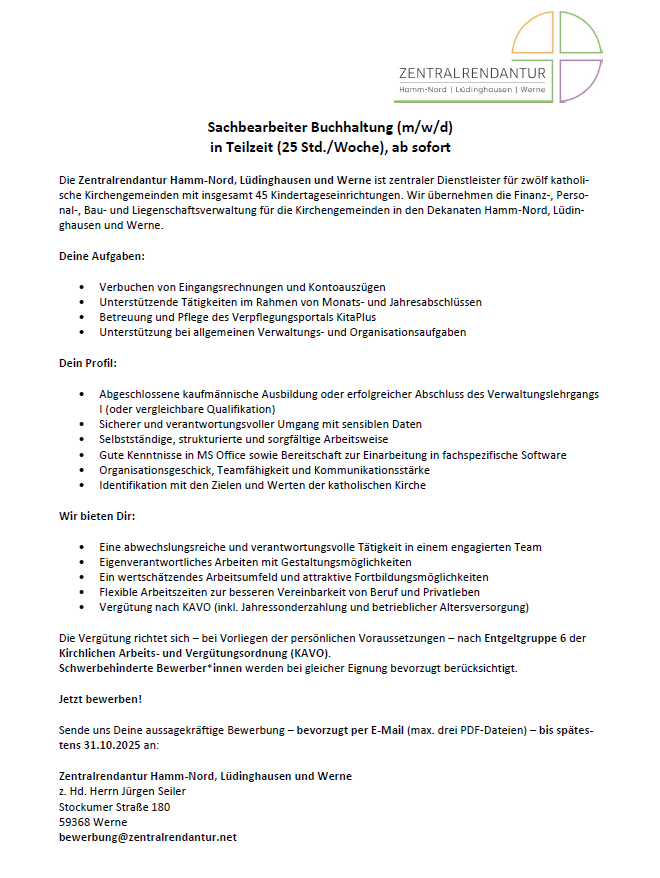 Zentralrendantur – Stellenausschreibung „Sachbearbeiter/in Buchhaltung“